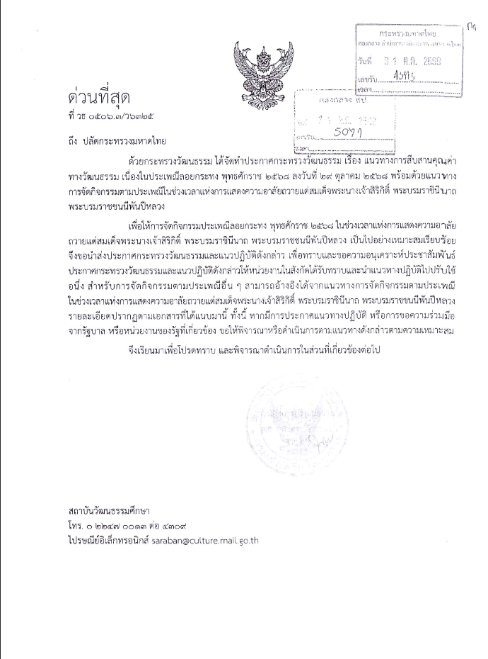 พิธีเฉลิมพระเกียรติพระบาทสมเด็จพระมงกุฎเกล้าเจ้าอยู่หัว เนื่องในวันคล้ายวันสวรรคตครบ  100  ปี  25  พฤศจิกายน  2568  และเฉลิมพระเกียรติสมเด็จพระเจ้าภคินีเธอ เจ้าฟ้าเพชรรัตนราชสุดา สิริโสภาพัณณวดี เนื่องในโอกาสวันคล้ายวันประสูติ ครบ 100 ปี 24