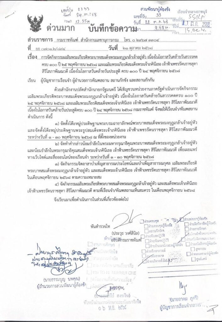 การจัดกิจกรรมเฉลิมระเกียรติพระบาทสมเด็จพระมงกุฎเกล้าเจ้าอยู่หัว เนื่องในโอกาสวันคล้าวันสวรรคตครบ ๑๐๐ ปี ๒๕ พฤศจิกายน ๒๕๖๘ และเฉลิมพระเกียรติสมเด็จพระเจ้าภคินีเธอ เจ้าฟ้าเพชรรัตนราชสุดาสิริโสภาพัณณวดี เนื่องในโอกาสวันคล้ายวันประสูติครบ ๑๐๐ ปี ๒๔ พฤศจิกายน ๒๕๖๘